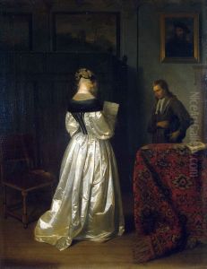 A Lady In An Interior Washing Her Hands In A Bowl Held By Her Maid