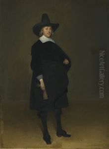 A Portrait Of A Gentleman Standing Full Length, Turned To The Right Wearing A Black Cloak And Linen Collar...