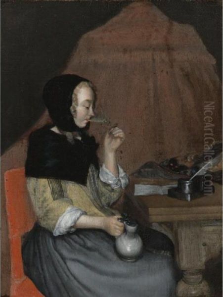 Bring the timeless beauty of Gerard Terborch's A Young Woman Drinking into your home with a handmade oil painting reproduction. Carefully recreated on canvas by skilled artists using traditional techniques, this piece captures the delicate brushwork, subtle light, and vibrant color of the original masterpiece. With museum-level quality and rich texture, it brings elegance and artistic depth to any space. Enjoy free shipping and make this masterpiece a part of your personal collection.