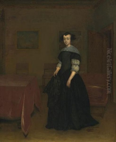 Bring the timeless beauty of Gerard Ter Borch's Portrait Of A Lady In An Interior into your home with a handmade oil painting reproduction. Carefully recreated on canvas by skilled artists using traditional techniques, this piece captures the delicate brushwork, subtle light, and vibrant color of the original masterpiece. With museum-level quality and rich texture, it brings elegance and artistic depth to any space. Enjoy free shipping and make this masterpiece a part of your personal collection.