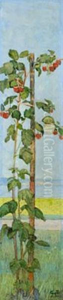 Gerhard Munthe’s Bringebaerbusk (Raspberry Bush) is a captivating example of Norwegian romantic nationalism, blending folklore and natural beauty into a harmonious visual narrative. Painted in the late 19th or early 20th century, this work exemplifies Munthe’s distinctive style—flat, decorative forms inspired by traditional Norwegian folk art (rosemaling) and Japanese woodblock prints. The composition is dreamlike, with sinuous branches heavy with raspberries weaving through the canvas, their rich reds contrasting against muted greens and golds. Munthe’s work is celebrated for reviving Nordic artistic traditions while infusing them with modern simplicity, making Bringebaerbusk a bridge between rural heritage and emerging Art Nouveau trends. Today, it holds a cherished place in Scandinavian art history, embodying the era’s cultural pride and connection to nature.