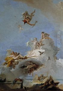 Giovanni Paolo Panini's Landscape With Soldiers Conversing Beside Classical Ruins (c. 1730s) is a captivating example of 18th-century veduta ideata—idealized landscapes blending reality and imagination. Set against crumbling Roman arches and weathered columns, the scene depicts soldiers in leisurely conversation, their vibrant attire contrasting with the muted ochres and grays of ancient stone. Sunlight slants dramatically through clouds, casting theatrical shadows that heighten the romantic decay. Panini, a master of architectural capriccio, arranges these ruins not as archaeological records but as poetic fragments, evoking nostalgia for Rome’s grandeur. His precise yet fluid brushwork reflects both Baroque dynamism and emerging Neoclassical restraint. Historically, this work exemplifies the Grand Tour era’s fascination with antiquity, serving as a "souvenir" for aristocratic travelers while bridging topographical accuracy with artistic license. Panini’s influence permeates later vedute painters like Canaletto, cementing his role in shaping Europe’s visual appetite for romanticized ruins.