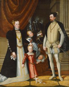 Maximilian II. (1527-1576) und seine Gemahlin Maria von Spanien (1528-1603) und seine Kinder Anna (1549-1580), Rudolf (1552-1612) und Ernst (1553-1595)