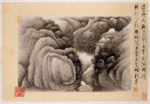 Gong Xian's A Thousand Peaks and Myriad Ravines is a mesmerizing masterpiece from the early Qing Dynasty, embodying the profound melancholy and solitude of Ming loyalists following the dynasty's collapse. The painting envelops viewers in a mist-shrouded landscape of towering peaks and deep valleys, rendered in dense, layered ink washes that create an almost tangible sense of atmospheric depth. Gong Xian, a leading figure of the Nanjing School, pioneered the "dark Gong" (Gong Hei) style—accumulating ink strokes to evoke weighty, somber mountain forms while leaving strategic voids for ethereal mist. This work transcends mere representation; it's a somber meditation on resilience, with gnarled trees clinging defiantly to cliffs symbolizing endurance amid political turmoil. As a pinnacle of literati painting, it redefined landscape conventions by merging emotional intensity with technical audacity, influencing generations of artists who sought to convey inner worlds through nature's grandeur.