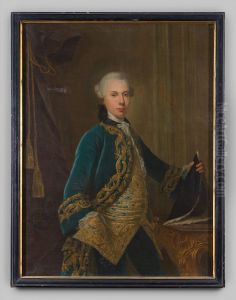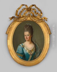 For interior styling, this portrait would elevate a formal living room or executive office with its refined palette of powdery blues, creams, and gold accents. Ideal for spaces with high ceilings and molding details, a gilded frame would harmonize with Louis XVI-style furniture or modern minimalist settings as a striking contrast piece. Position it as a focal point above a console table or between windows to take advantage of natural light that mimics its original luminosity. The 24x30 inch (approximate) scale suits medium-sized walls without overwhelming—pair with subdued wall colors like dove gray or muted sage to let the artwork shine. For eclectic interiors, juxtapose it with contemporary abstract sculptures to create a dynamic dialogue between eras. In corporate spaces, it lends historical gravitas when accompanied by rich walnut furnishings and brass desk accessories that echo its warm undertones.