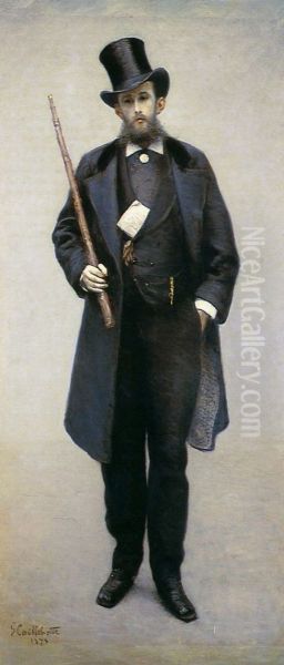 Gustave Caillebotte's Delt va Paul Hugot is a striking example of the artist's mastery in blending realism with the nascent Impressionist style. Painted circa 1878, the work captures Paul Hugot, a fellow artist and friend of Caillebotte, in a moment of contemplative repose. The composition is intimate yet dynamic, with Caillebotte's meticulous attention to texture—rendering the sitter's crisp white shirt, the gleam of his walking stick, and the soft folds of his hat with remarkable precision. The subdued palette, dominated by earthy tones and muted blues, conveys a sense of quiet elegance, while the loose brushwork in the background hints at Caillebotte's Impressionist leanings. Though less celebrated than his urban scenes like Paris Street; Rainy Day, this portrait exemplifies his ability to infuse everyday subjects with psychological depth and technical brilliance, solidifying his unique position as both a patron and innovator within the Impressionist movement.