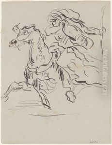 Gustave Flasschoen's Arabische Ruiters (Arab Horsemen) transports viewers to a vibrant North African scene, where sun-drenched desert hues meet dynamic motion. The Belgian Orientalist painter, active in the late 19th to early 20th century, captures Bedouin riders mid-gallop with loose, expressive brushstrokes that blur boundaries between realism and impressionism. Earthy ochres, fiery reds, and deep indigos dominate the composition, evoking both the heat of the landscape and the cultural richness Flasschoen observed during his travels. Though less renowned than contemporaries like Delacroix, his work exemplifies Europe's fascination with "exotic" subjects during the Orientalist movement, offering a romanticized yet technically masterful depiction of Arab equestrian culture. The painting's kinetic energy and atmospheric light effects showcase his transition from academic precision toward more emotive techniques.