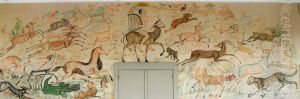 For interior decoration, Orpheus Charming The Animals would elevate a study, library, or lounge with its refined classical allure. Its warm earth tones—ochres, deep greens, and rusts—pair beautifully with rich woods, leather furnishings, or antique brass accents, creating a sophisticated yet inviting space. A medium-to-large reproduction (around 24" x 36") would command attention without overwhelming the room, ideally hung as a focal point above a console or between bookshelves. To harmonize, incorporate textures like velvet or silk in complementary hues, while keeping other decor subdued to let the artwork shine. In an office, it would inspire creativity, its mythical theme subtly reinforcing themes of persuasion and influence—ideal for a meeting area or executive suite.