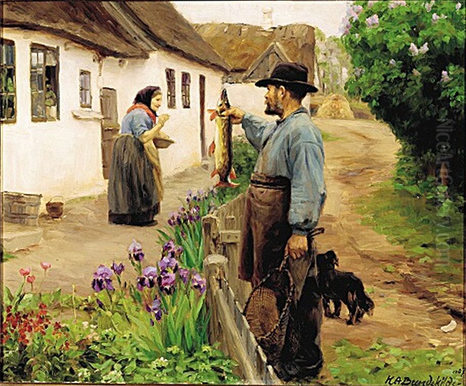 Bring the timeless beauty of H. A. Brendekilde's "The Fisherman". A fisherman offering a fresh northern pike to an old woman. into your home with a handmade oil painting reproduction. Carefully recreated on canvas by skilled artists using traditional techniques, this piece captures the delicate brushwork, subtle light, and vibrant color of the original masterpiece. With museum-level quality and rich texture, it brings elegance and artistic depth to any space. Enjoy free shipping and make this masterpiece a part of your personal collection.