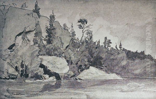 Hans Gude’s Hauketjern at Sarabraaten (1853) is a masterful fusion of Romantic grandeur and precise Naturalism, capturing the serene yet untamed beauty of a Norwegian lake surrounded by dense forest. The painting’s luminous sky, mirrored perfectly in the still water, creates a dreamlike tranquility, while the rugged terrain and muted earthy tones ground the scene in realism. As a key figure of the Düsseldorf School, Gude balanced meticulous detail with atmospheric depth, elevating landscape painting to a poetic medium. This work exemplifies the 19th-century Nordic appreciation for nature’s sublime, bridging Romantic emotionality with the emerging Naturalist movement. Its historical significance lies in its influence on later Scandinavian artists, solidifying Gude’s legacy as a pioneer of national Romantic landscapes.