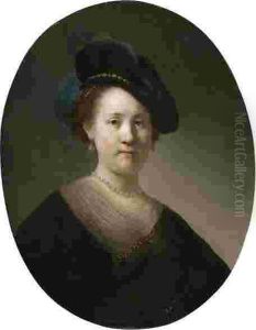 Portrait Of A Lady Wearing A Velvet Cap And Pearl Earring