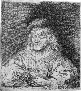The Artist's Mother Seated At A Table, Looking Right (b., Holl. 343; H. 52)