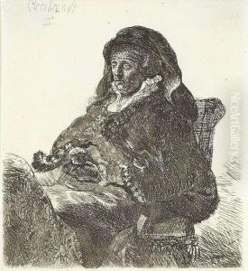The Artist's Mother seated at a Table looking right Three-quarter Length