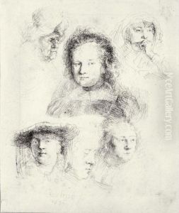 Studies Of The Head Of Saskia And Others (b., Holl. 365; H. 145;bb. 36-b)