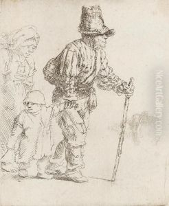 A Peasant in a high Cap, standing leaning on a Stick 2