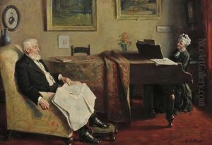 Brett's style was characterized by a keen observation of light and shadow, which he used to create depth and mood in his compositions. He had a particular skill in portraying the human figure, with a sensitive eye for expressions and gestures that revealed the inner life of his subjects.