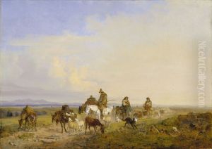 Gebirgslandschaft mit Kirche und Pferden an der Tranke (Waxensteine von Obergrainau)