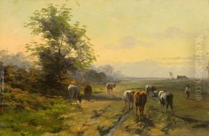 A Summer Landscape With A Peasantwoman And Cattle By A Stream