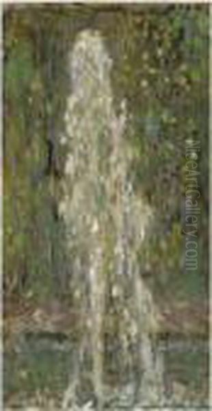 Henri Eugène Augustin Le Sidaner's Jet d'eau au clair de lune (Fountain in Moonlight) is a captivating example of the artist's signature Intimist style, blending Post-Impressionist luminosity with Symbolist melancholy. Painted in the early 20th century, the work depicts a nocturnal garden scene where a fountain's silvery jet shimmers under soft moonlight, casting delicate reflections on still water. Le Sidaner masterfully employs muted blues, greens, and pearlescent whites to create an atmosphere of poetic solitude, a hallmark of his oeuvre. The composition's quiet intensity—where architecture dissolves into hazy brushwork—showcases his transition from Impressionism toward a more personal, evocative approach. As a leading figure of Intimism, Le Sidaner's moonlit scenes occupy a unique niche in art history, bridging Monet's atmospheric effects with the emotional resonance of Whistler's nocturnes. This particular painting exemplifies his ability to transform ordinary moments into meditative vignettes.