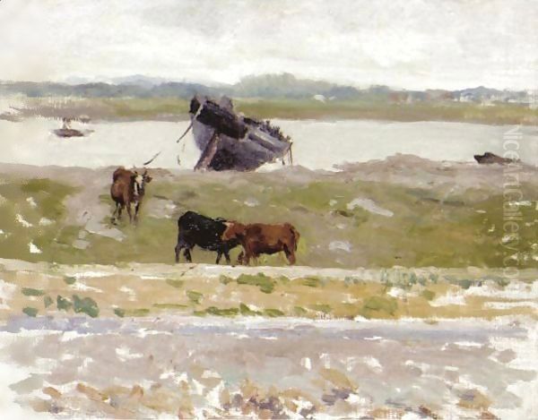 Henri Eugène Augustin Le Sidaner's Vaches près d'une barque, Étaples (Cows Near a Boat, Étaples) is a luminous example of the artist’s signature Intimist style, blending Impressionist light with Symbolist tranquility. Painted in the late 19th or early 20th century, this serene landscape captures the quiet poetry of rural Étaples, a coastal town in northern France where Le Sidaner frequently worked. The composition, bathed in soft, diffused light, features grazing cows beside a weathered boat, their forms gently blurred as if seen through a veil of twilight. Le Sidaner’s delicate brushwork and muted palette evoke a dreamlike stillness, distancing his work from the vibrancy of Impressionism while embracing a more introspective, almost nostalgic mood. Though less radical than his avant-garde contemporaries, Le Sidaner’s oeuvre holds a unique place in art history as a bridge between Impressionism and modern interiority, appealing to collectors who cherish atmospheric subtlety.