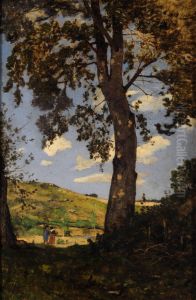 Henri Harpignies’ Fir Trees in Les Trembleaux, near Marlotte (1867) captures the serene beauty of the French countryside with remarkable precision and atmospheric depth. This oil painting, rooted in the Barbizon School tradition, embraces the plein-air technique, showcasing Harpignies’ mastery of natural light and texture. The composition, dominated by towering fir trees against a soft sky, evokes a sense of tranquility and timelessness, with delicate brushwork rendering the interplay of shadows and foliage. A contemporary of Corot and Daubigny, Harpignies was celebrated for his landscapes that bridged Romanticism and Realism, and this work exemplifies his ability to balance poetic mood with meticulous observation. Though less widely known than some Impressionists, his influence on later landscape painters is significant, making this piece a subtle yet impactful representation of 19th-century French naturalism.