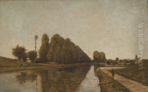 Henri Harpignies’ Moonrise is a captivating landscape painting that exudes tranquility and poetic realism. Created in the late 19th century during the height of the Barbizon School’s influence, the work showcases Harpignies’ mastery in capturing the subtle interplay of light and atmosphere. The scene depicts a serene countryside bathed in the soft, silvery glow of a rising moon, with delicate brushstrokes rendering the lush foliage and distant horizon. Harpignies, often referred to as the "poet of landscape," blends realism with a dreamlike quality, aligning with the Barbizon tradition of painting en plein air to honor nature’s ephemeral beauty. Though less famous than his contemporaries like Corot or Rousseau, Harpignies’ works, including Moonrise, are celebrated for their lyrical harmony and technical precision, bridging Romanticism and early Impressionism. This painting holds a quiet yet significant place in art history as a testament to the introspective, nature-centric ethos of the era.
