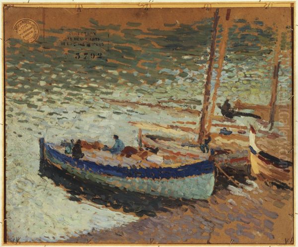 Henri-Jean Guillaume Martin’s Bouquet de bleuets – Barques au port captures the luminous essence of Post-Impressionism with its dappled brushwork and ethereal play of light. Painted during Martin’s mature period, this work exemplifies his signature divisionist technique, where short, rhythmic strokes of pure color blend optically to evoke shimmering atmospheres. The scene juxtaposes a vibrant bouquet of cornflowers against a serene harbor backdrop, merging intimate still-life poetry with landscape tranquility. Martin, influenced by Symbolism and Neo-Impressionism, was celebrated for his ability to transmute nature into a dreamlike vision, straddling Romantic lyricism and modern chromatic experimentation. Though less globally renowned than contemporaries like Monet, Martin’s works are prized in French collections for their delicate balance of emotional depth and technical precision, offering a bridge between 19th-century Impressionism and early modernist abstraction.