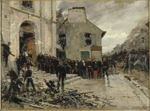 For interior decor, Scene Militaire suits a study, library, or office with classic or traditional aesthetics. Its rich earthy tones—ochres, deep blues, and muted grays—pair well with wooden furniture, leather accents, or vintage brass fixtures. Opt for a medium to large frame (around 24x36 inches) to allow details to shine without overwhelming the space. Hang it as a focal point above a mantel or behind a desk, complemented by subdued wall colors like taupe or olive green to accentuate its dramatic contrasts. In a modern setting, juxtapose it with minimalist furniture for an eclectic touch, letting the painting’s historical gravitas balance sleek lines. Avoid cluttering nearby walls; instead, let its energy command attention while harmonizing with complementary hues in textiles or decor.