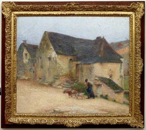 Henri Martin's Chevrière Devant Une Vieille Maison À Labastide (Shepherdess Before an Old House in Labastide) epitomizes the Post-Impressionist master’s lyrical approach to rural life. Painted circa 1900–1910 during Martin’s mature period in Labastide-du-Vert, the canvas shimmers with his signature divisionist technique—tiny, rhythmic brushstrokes weaving sunlight into a tapestry of luminous color. A lone shepherdess stands bathed in golden warmth, her solitude accentuated by the weathered stone house and undulating landscape, evoking nostalgia and harmony between humanity and nature. Though less celebrated than contemporaries like Seurat, Martin’s synthesis of Symbolist poetry and Neo-Impressionist science earned him renown at the Salon de la Société Nationale and influenced later Fauvist explorations of light. The painting’s quiet grandeur encapsulates his unique position bridging 19th-century romanticism and modernist innovation.