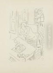 Henri Matisse's Figure Dans Un Intérieur (Duthuit 452) is a vibrant testament to the artist's mastery of color, form, and expressive simplicity, exemplifying his late-career paper-cut technique (gouaches découpées). Created in 1947, this work reflects Matisse’s shift from traditional painting to cut-out compositions after health issues limited his mobility. The piece dazzles with bold, organic shapes and rhythmic patterns, evoking a sense of joyful spontaneity and harmonious balance characteristic of his Fauvist roots. Set against flat, unmodulated planes of color—likely bright blues or yellows—the abstracted interior and figure radiate warmth and vitality, distilling reality into pure emotion. Historically, Matisse’s cut-outs bridged modernism and abstraction, influencing movements like Color Field painting and solidifying his legacy as a pioneer of 20th-century art.