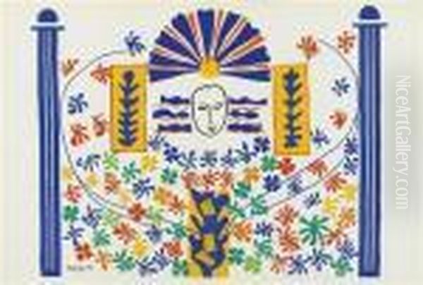 Henri Matisse's Apollon (1953) is a vibrant masterpiece from the artist's late career, embodying the essence of his revolutionary cut-out technique. Using bold, fluid forms in radiant blues, yellows, and whites, Matisse depicts the Greek god Apollo with a lyrical simplicity that feels both primal and modern. Created during a period when the artist was bedridden and working with painted paper cut-outs, Apollon reflects Matisse's unwavering dedication to joy, movement, and pure color. This work stands as a pivotal example of mid-century modernism, bridging the gap between figurative art and abstraction while influencing generations of artists with its liberated form and emotional immediacy. Today, it remains a celebrated symbol of Matisse's innovative spirit and his ability to transform limitation into boundless creativity.