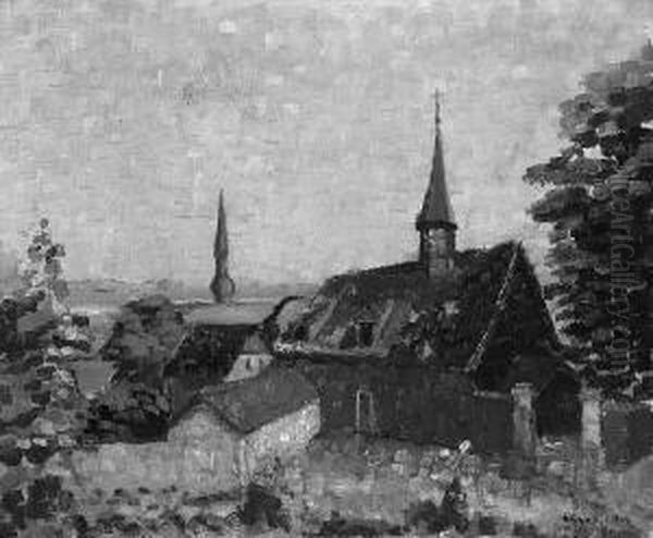 H. "blick Auf Ein Dorf". Sign. Ol Auf Lwd. 46 X 55 Cm. Rahmen