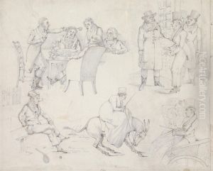 Two Dismounted Riders Drinking at an Alehouse Door