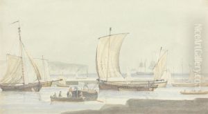 A Dutch Schuyt Entering Harbour Oil Painting by Henry Valter