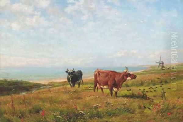 Summertime by Henry William Banks Davis, R.A. (1833–1914) is a quintessential example of Victorian-era pastoral painting, radiating tranquility and idyllic beauty. The work captures a serene rural scene, likely inspired by the English countryside, where sunlight bathes lush greenery and placid waters while figures—often depicted as shepherds or children—engage in leisurely activities. Davis, an academic painter and Royal Academician, was celebrated for his meticulous detail, soft luminosity, and idealized naturalism, traits evident in this piece. The composition balances realism with romanticism, reflecting the 19th-century fascination with rural life as an antidote to industrialization. Though lesser-known than contemporaries like Constable or Turner, Davis’s works hold significance for their embodiment of Victorian aesthetic values and their technical precision, making Summertime a charming yet historically anchored piece.