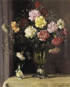Still Life With Flowers And Figurines Oil Painting by Herbert Davis Richter