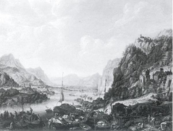 Herman Saftleven’s Rhenlandskap med handelsplats (Rhine Landscape with Trading Post) is a captivating 17th-century Dutch landscape painting that immerses viewers in the serene beauty of the Rhine River. With delicate brushwork and a muted yet harmonious palette, Saftleven depicts a tranquil riverside scene bustling with small trading activity—boats gently floating, figures engaged in commerce, and distant rolling hills softening under a vast, atmospheric sky. Created during the Dutch Golden Age, this work exemplifies the period’s fascination with detailed realism and idealized nature, blending topographical accuracy with poetic tranquility. Saftleven, though less celebrated than peers like Ruisdael, was a master of intimate landscapes, and this painting reflects his skill in balancing narrative detail with atmospheric depth. It holds significance in art history as a fine example of how 17th-century Dutch artists transformed landscapes into evocative, standalone subjects, moving beyond mere backdrops.