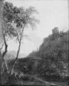 An Italianate River Landscape With Travellers On A Path, A Town Beyond