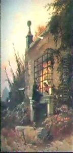 "A Lovers' Tryst" by Hermann David Solomon Corrodi (1844–1905) is a captivating 19th-century Orientalist painting that exudes romance and exoticism. Set against a lush, dreamy landscape—likely inspired by Corrodi’s travels in the Middle East—the artwork depicts an intimate moment between lovers, bathed in soft, golden light that enhances the sensuality and tranquility of the scene. Corrodi’s meticulous brushwork and attention to detail, from the flowing fabrics to the intricate architectural elements, reflect his academic training and the influence of Romanticism. As a prominent figure in Orientalist art, Corrodi’s works, including this one, offer a European fantasy of the "Orient," blending realism with idealized beauty. Though Orientalism has been critiqued for its colonial gaze, A Lovers' Tryst remains significant for its technical mastery and as a window into 19th-century cross-cultural fascination.