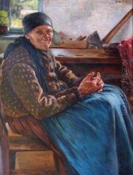 The painting Bauerin, In Der Werkstatt Sitzend (Peasant Woman Sitting in the Workshop) by Hermann Knopf immerses viewers in a quiet, contemplative moment of rural life. Knopf, an Austrian artist active in the late 19th and early 20th centuries, captures the resilience and dignity of ordinary laborers through his realist approach, softened by warm, earthy tones. The scene depicts a woman seated amidst the rustic tools of her workshop, her posture poised yet weary—a testament to her hardworking existence. Knopf’s brushwork blends meticulous detail with subtle impressionistic touches, positioning him within the broader tradition of European genre painting that celebrated everyday narratives. While not as widely recognized as his contemporaries, his works offer an intimate glimpse into agrarian life, preserving sociohistorical nuances often overlooked in grander artistic movements.