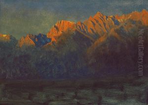 Between the Sierras and the Coast Range, California by Hermann Ottomar Herzog (1832–1932) transports viewers to the majestic wilderness of 19th-century California. This luminous Hudson River School-style landscape captures the golden light of the American West, where rolling foothills, distant peaks, and a tranquil river converge under a dramatic sky. Herzog, a German-American painter known for his meticulous realism and romantic sensibility, imbues the scene with both grandeur and intimacy—celebrating nature’s untouched beauty during America’s westward expansion. The painting’s meticulous detail and radiant atmosphere reflect his academic training and admiration for Albert Bierstadt’s panoramic visions. Historically, it represents the European Romantic tradition adapting to New World landscapes, bridging transcendental ideals with emerging American identity.