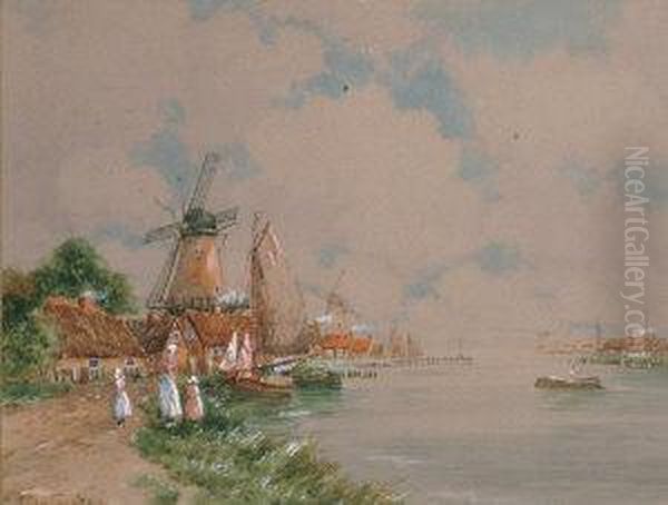 Mother And Children Before A River