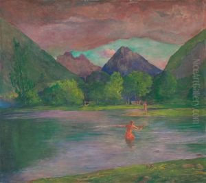Hjalmar Munsterhjelm’s Checking The Nets (likely late 19th century) captures the serene yet rugged beauty of Nordic coastal life. The painting depicts fishermen diligently inspecting their nets, bathed in the soft, diffused light of a Nordic twilight. Munsterhjelm, a Finnish artist influenced by the Düsseldorf School, masterfully blends realism with a touch of romanticism, emphasizing the harmony between humans and nature. His precise brushwork and muted yet luminous palette—think silvery grays, cool blues, and earthy browns—evoke a sense of quiet resilience. Though lesser-known internationally, Munsterhjelm holds a significant place in Finnish art history as a chronicler of rural and maritime traditions, bridging 19th-century naturalism and emerging national romanticism. The painting’s intimate scale and detailed composition invite viewers into a moment of quiet labor, offering both historical insight and aesthetic pleasure.