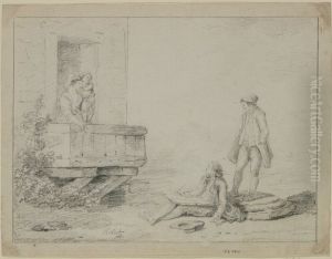 Washer Women And Fishermen Beneath An Arch And Figures In A Landscape With A Fountain And Classical Ruins