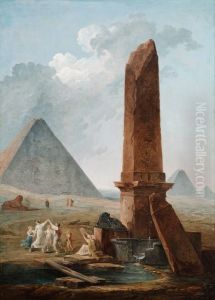 Felsige Flusslandschaft mit Pyramide und Wassertragerin
