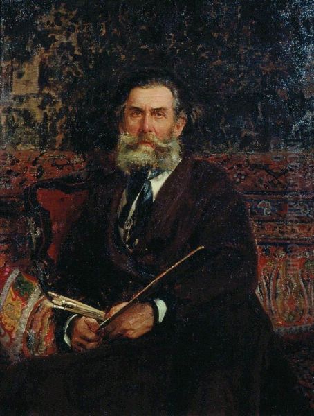 Ilya Repin’s Portrait of the Painter Alexey Petrovich Bogoliubov is a masterful celebration of artistic camaraderie and the introspective grace of a mature creator. Painted in 1882, the work captures Bogoliubov—a renowned marine painter and Repin’s elder contemporary—seated casually yet thoughtfully, his gaze distant yet warm, as if immersed in creative reflection. Repin’s signature realism shines through in the meticulous rendering of textures: the soft folds of Bogoliubov’s linen blouse, the delicate wisps of his beard, and the ambient play of light filtering through the studio space. The subdued earthy palette, punctuated by subtle rosy tones in the face, exudes quiet dignity, while the loose brushwork in the background hints at artistic spontaneity. Historically significant, this portrait embodies the Peredvizhniki (Wanderers) movement’s ethos—rejecting academic formalism to portray genuine human depth. It also highlights Repin’s role as a bridge between Russia’s realist tradition and emerging modernism, cementing his reputation as a peerless portraitist of his era.