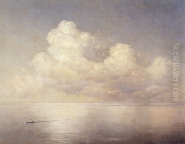 Ivan Aivazovsky’s Clouds over the Sea is a breathtaking seascape that captures the dramatic interplay of light and atmosphere, showcasing the artist’s mastery of maritime painting. The work depicts rolling waves under an expansive sky filled with voluminous clouds, their luminous edges catching the sunlight while darker tones suggest an approaching storm. Aivazovsky, a 19th-century Romantic painter, was renowned for his ability to render the sea’s ever-changing moods with almost photographic precision, blending realism with emotive grandeur. As one of Russia’s most celebrated artists, his works are pivotal in marine art history, influencing generations with their dynamic compositions and luminous effects. Clouds over the Sea exemplifies his signature style—lyrical yet powerful, where nature’s sublime force takes center stage.
