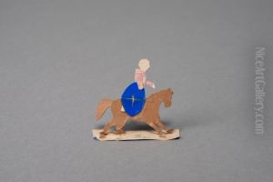 Santa Claus figure in grey, in a sledge dragged by a deer [one of 36 figures]