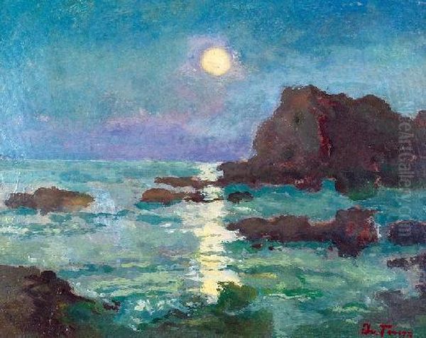 Iwan Trusz's Zachód Słońca Nad Zatoką (Sunset Over the Bay) captures the ephemeral magic of twilight with breathtaking lyricism. Painted during Poland's Young Poland movement (circa early 20th century), this oil-on-canvas masterpiece exemplifies Trusz’s mastery of luminism—where radiant light dissolves landscapes into atmospheric poetry. The scene depicts a tranquil bay bathed in molten gold and lavender hues, the shimmering water mirroring streaky clouds suspended between day and night. Unlike his contemporary Chełmoński’s rustic realism, Trusz’s brushwork verges on Impressionistic spontaneity, yet retains Slavic romanticism’s emotional depth. As a pivotal figure bridging 19th-century academic traditions and modernist experimentation, Trusz elevated landscape painting beyond topographical representation into meditations on transcendence—earning Zachód Słońca critical acclaim at Poland’s National Exhibitions and enduring significance in Central European art history.