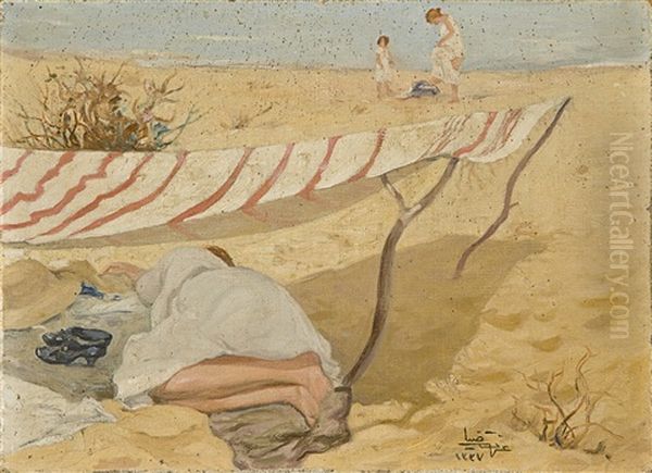 Plajda (The Beach) by Izzet Ziya is a mesmerizing canvas that captures the vibrant energy of early 20th-century Istanbul. Painted circa 1924 during Turkey's modernization period, the work exemplifies the artist's signature blend of Impressionist brushwork and Ottoman decorative sensibilities. Sun-drenched figures stroll along the shoreline, their flowing garments rendered in lively strokes of peach and azure, while the Bosphorus shimmers with fractured reflections. As one of Ziya's most celebrated works, Plajda holds a pivotal place in Turkish art history—bridging European modernist influences with distinctly local subjects. The loose, expressive handling of light anticipates later developments in Turkish Post-Impressionism while documenting the emerging beach culture among Istanbul's cosmopolitan elite.